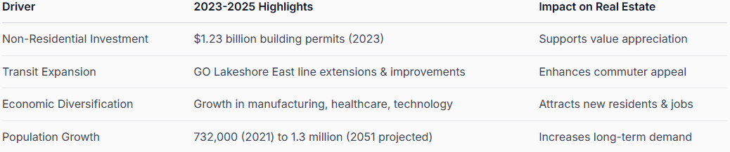 Below is a summary table of key economic and infrastructure drivers highlighted in Durham Region: