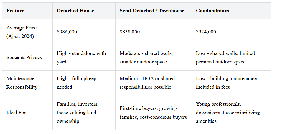 Key Comparison Table: Housing Types in Ajax and Nearby Areas