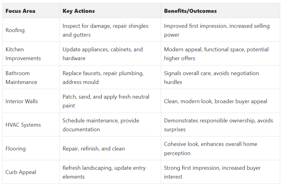 This table provides a summary of the key strategies and actions for preparing your home for sale in the Toronto and Durham regions, enhancing its appeal to potential buyers.