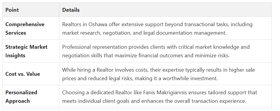 Why Use a Realtor® in Oshawa becomes critically important when considering the intricate legal landscape of property transactions. Realtors like those at Fanis Makrigiannis Realty provide an additional layer of professional protection, ensuring that clients’ interests are comprehensively represented through every stage of buying or selling property.